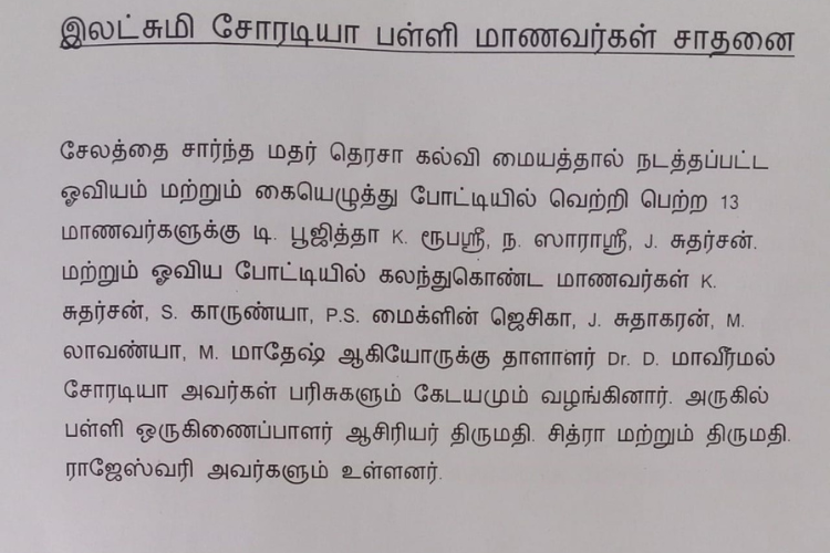 Recongnized by Govt. of Tamilnadu(A unit of Lakshmi Chordia Memorial Educational Trust)